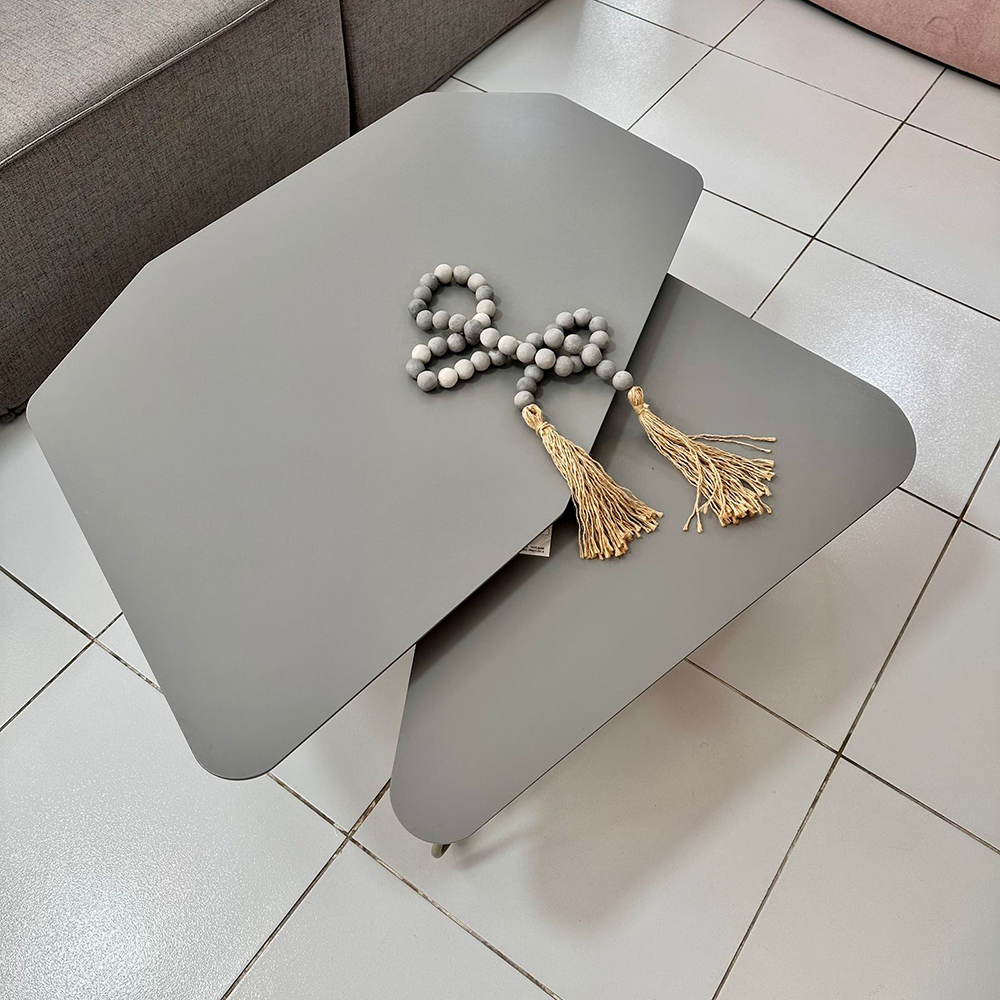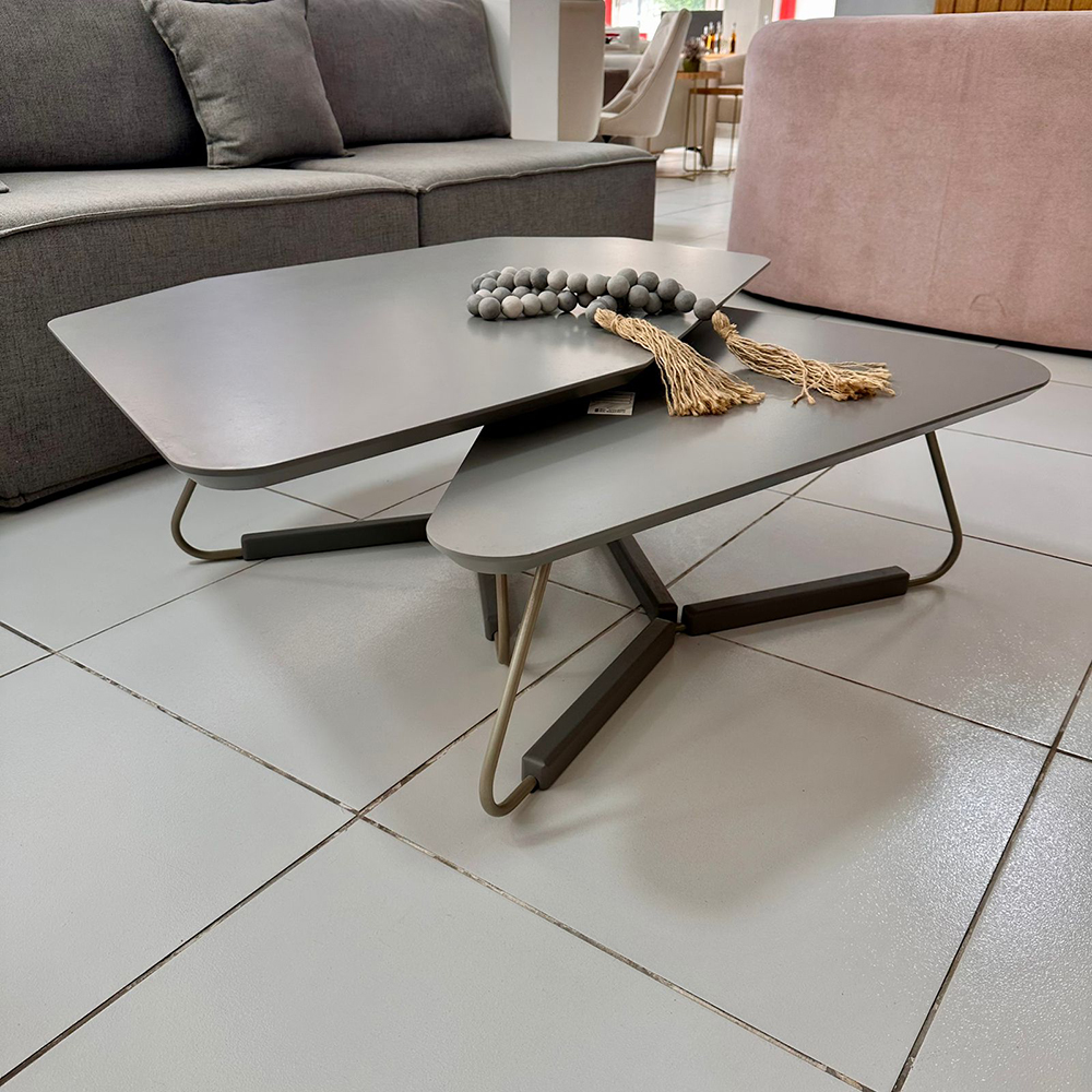 Tampo 100% mdf; laminado na cor cinza fosco e pés em alumínio