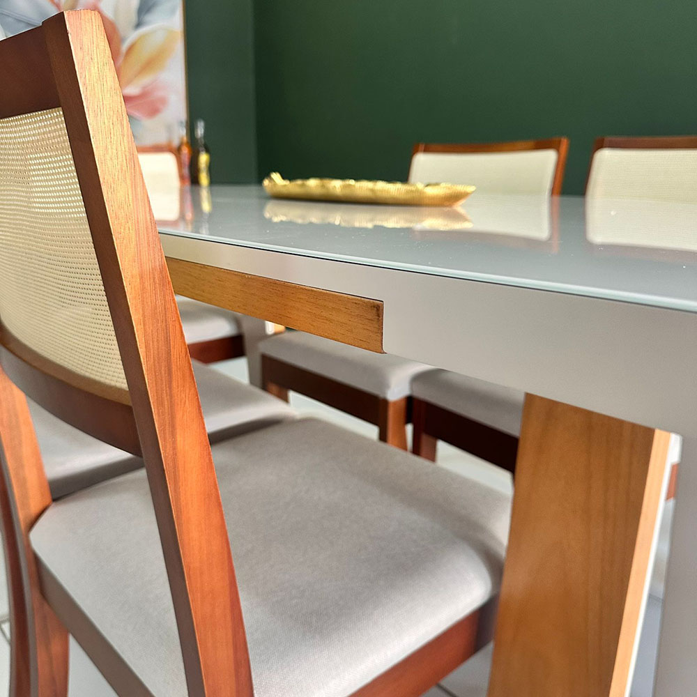 Mesa Retangular com mix do acabamento em madeira e off-white fosco