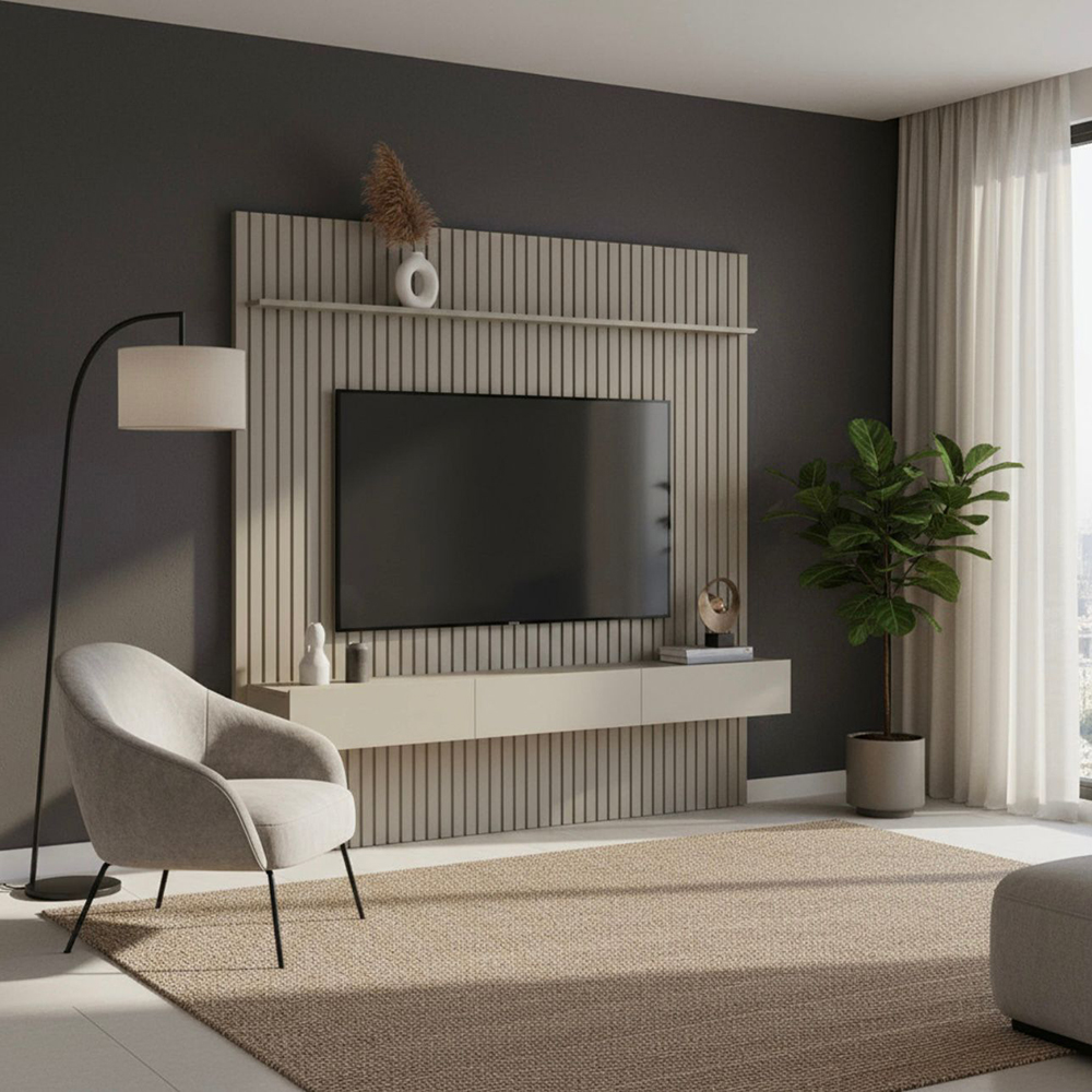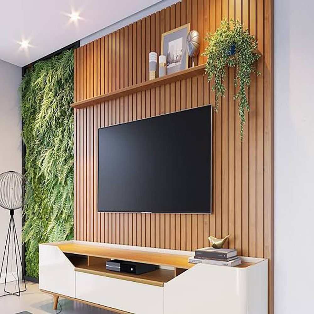Em ripado, prateleira pra organização; cor nature ou gianduia